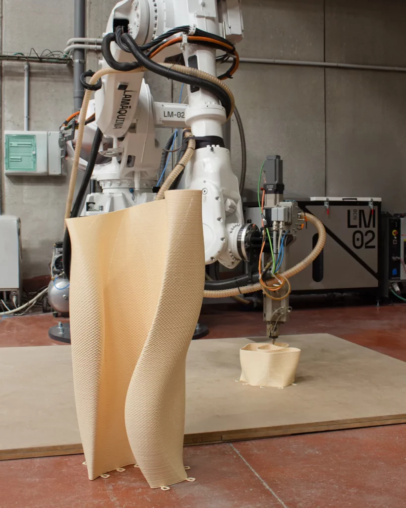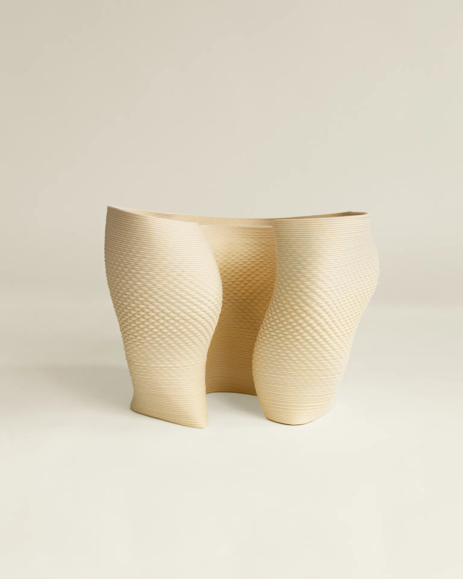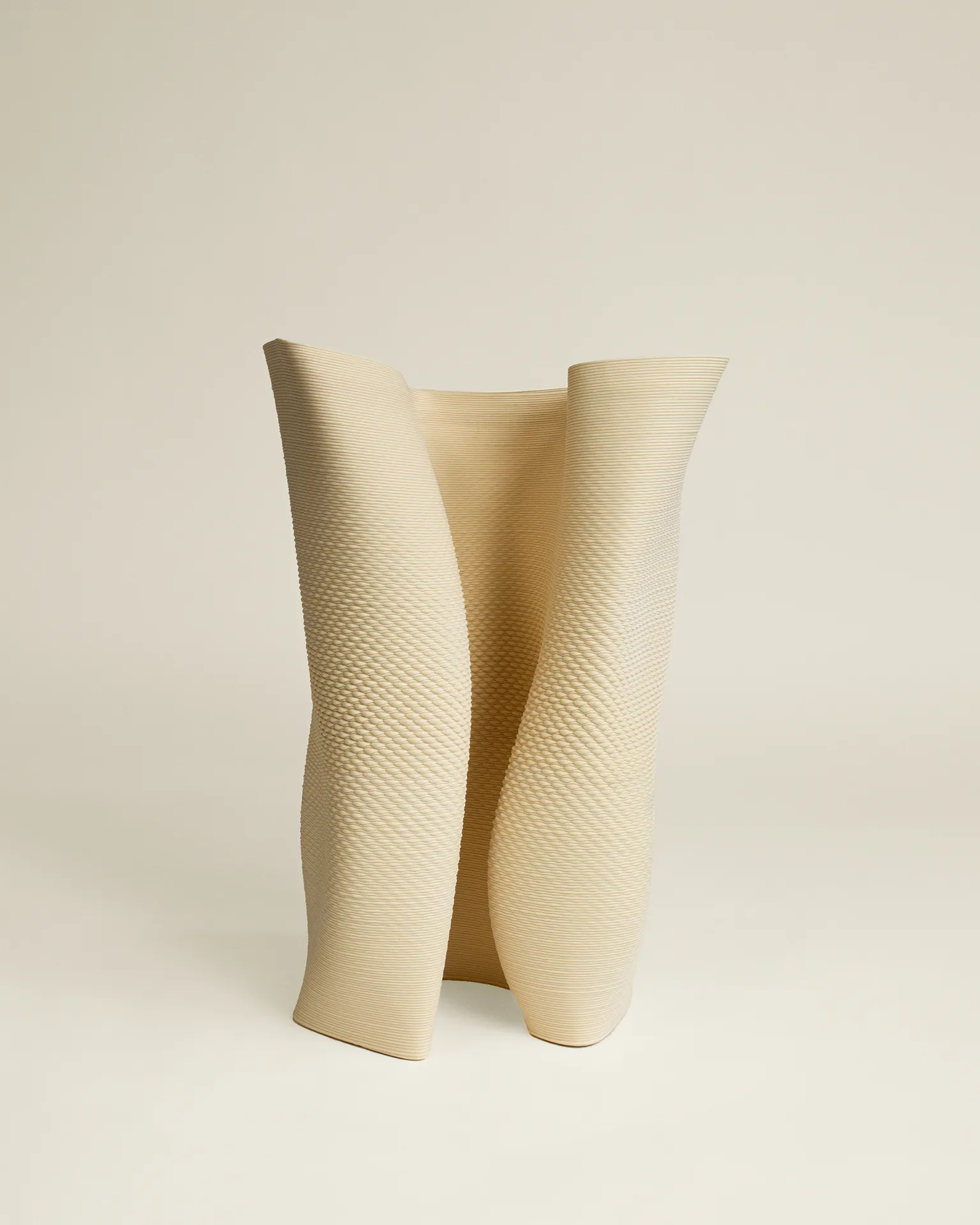 Studer & Co has developed a collection of 3D-printed vases that can be produced in any RAL shade. The organic shapes and textured surfaces introduce a dynamic, tactile quality to interiors. Each piece is fabricated using robotic 3D printing, with speed and extrusion constantly recalibrated to sculpt the material into fluid, site-specific forms.